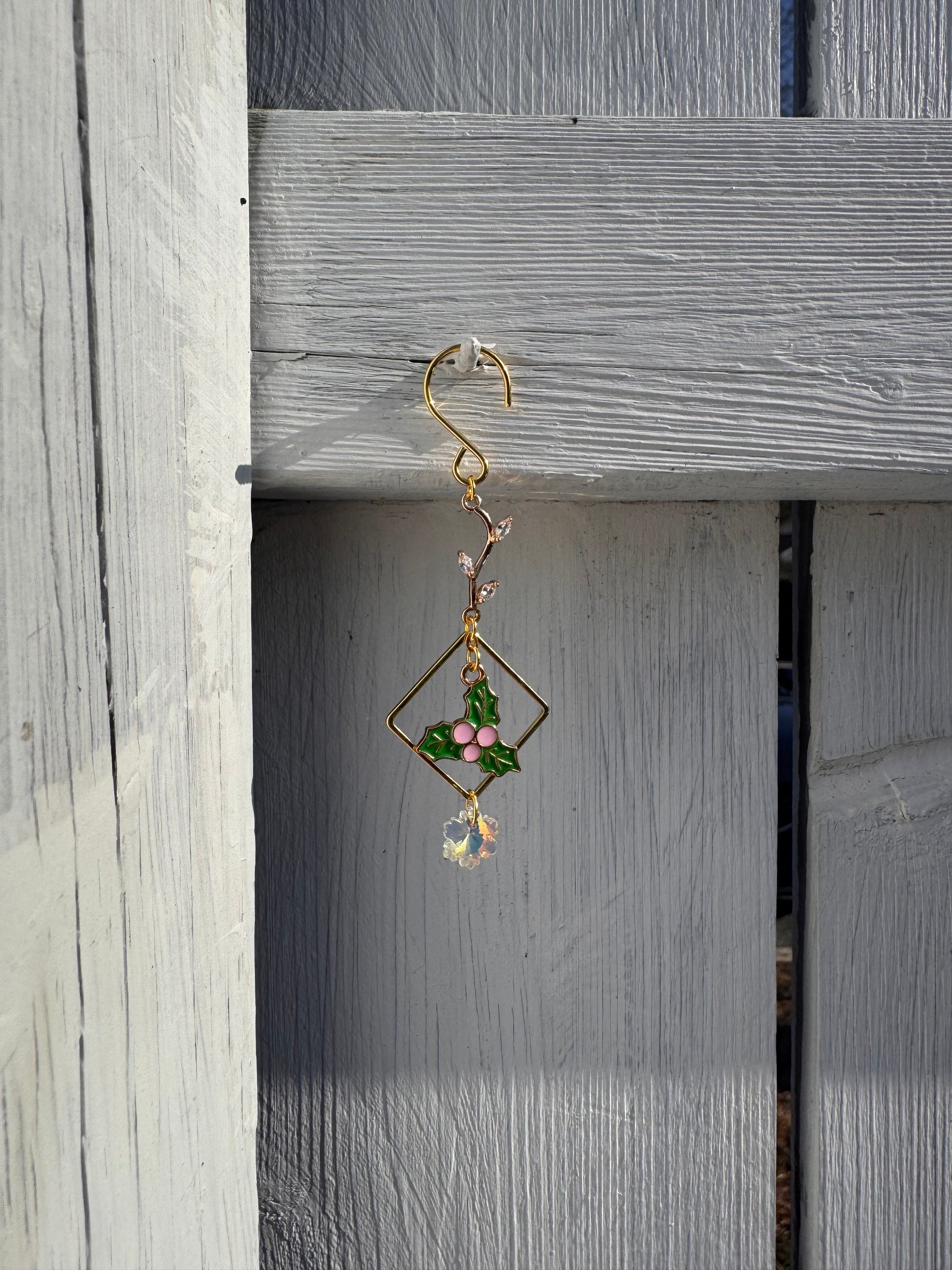 This holiday tree ornament is an original Le Eterea design, and handmade with love! Perfect for tree decor, or as a tiny sun catcher!